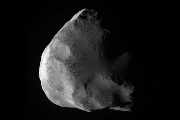 Феба — один из нерегулярных удаленных спутников Сатурна, открытый У. Пикерингом в 1899 году по снимкам, полученным в Арекипской обсерватории (Перу). Названа в честь титаниды Фебы из древнегреческой мифологии. Феба является очень тёмным телом, но внутренность некоторых кратеров состоит из более светлого материала, предположительно льда. (Фото Nasa | JPL-Caltech | Space Science Institute):
