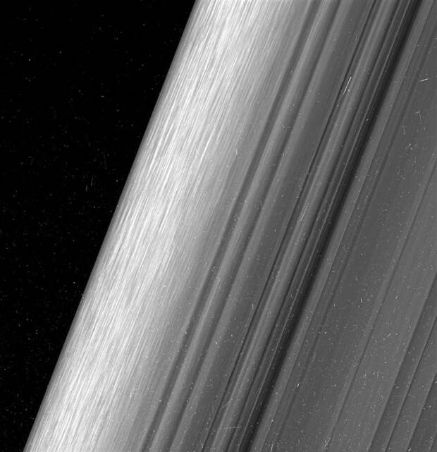 Ожидаемое событие настолько взбудоражило умы людей, что публиковались расчёты, когда на Землю упадут частицы колец. Слух появился из-за того, что кольца попросту повернулись ребром к земным наблюдателям, а так как они очень тонкие, то в приборы того времени их было невозможно разглядеть. Люди поняли «исчезновение колец» в прямом смысле, что и породило слух. (Фото NASA | JPL-Caltech | Space Science Institute):
